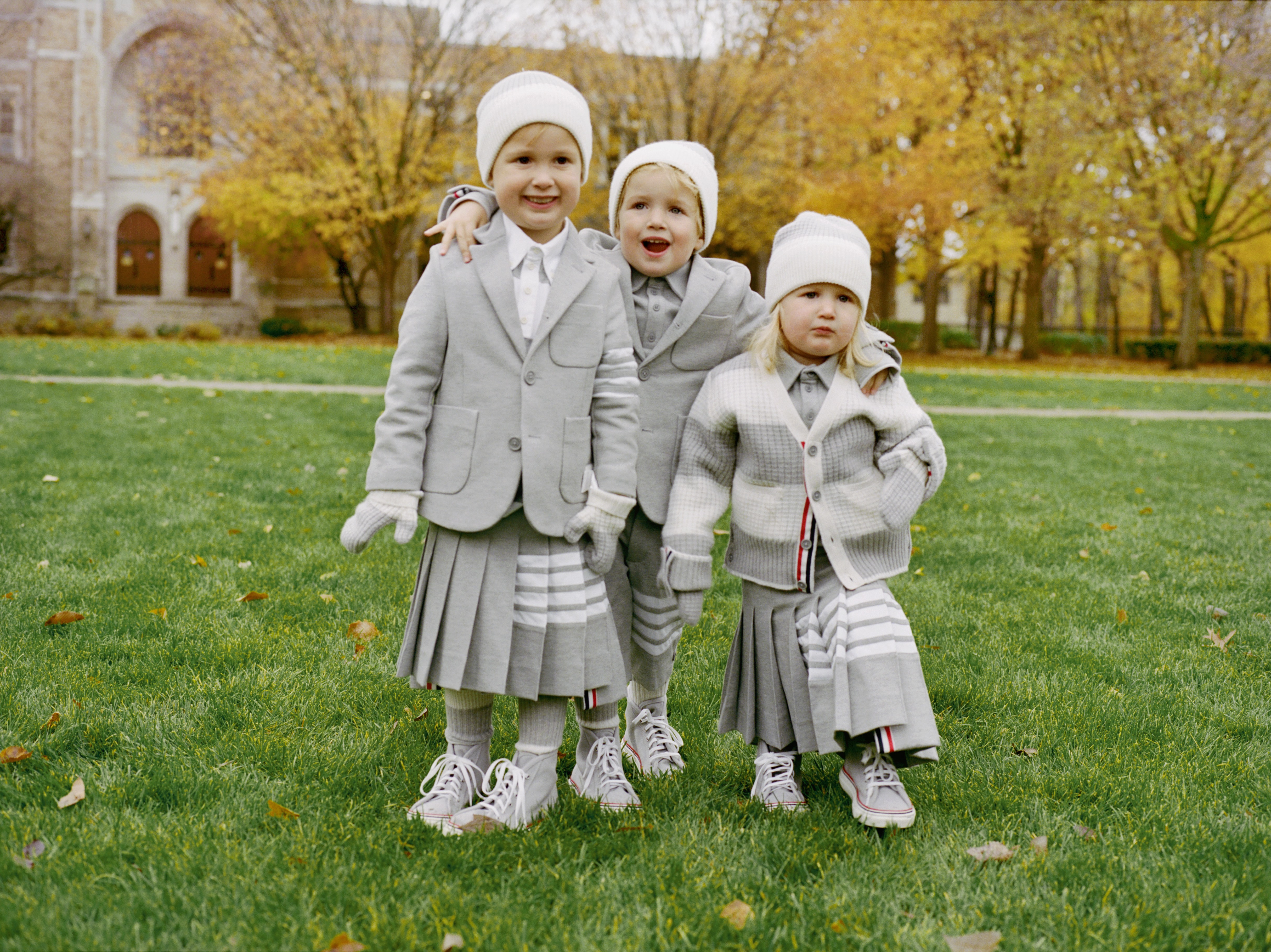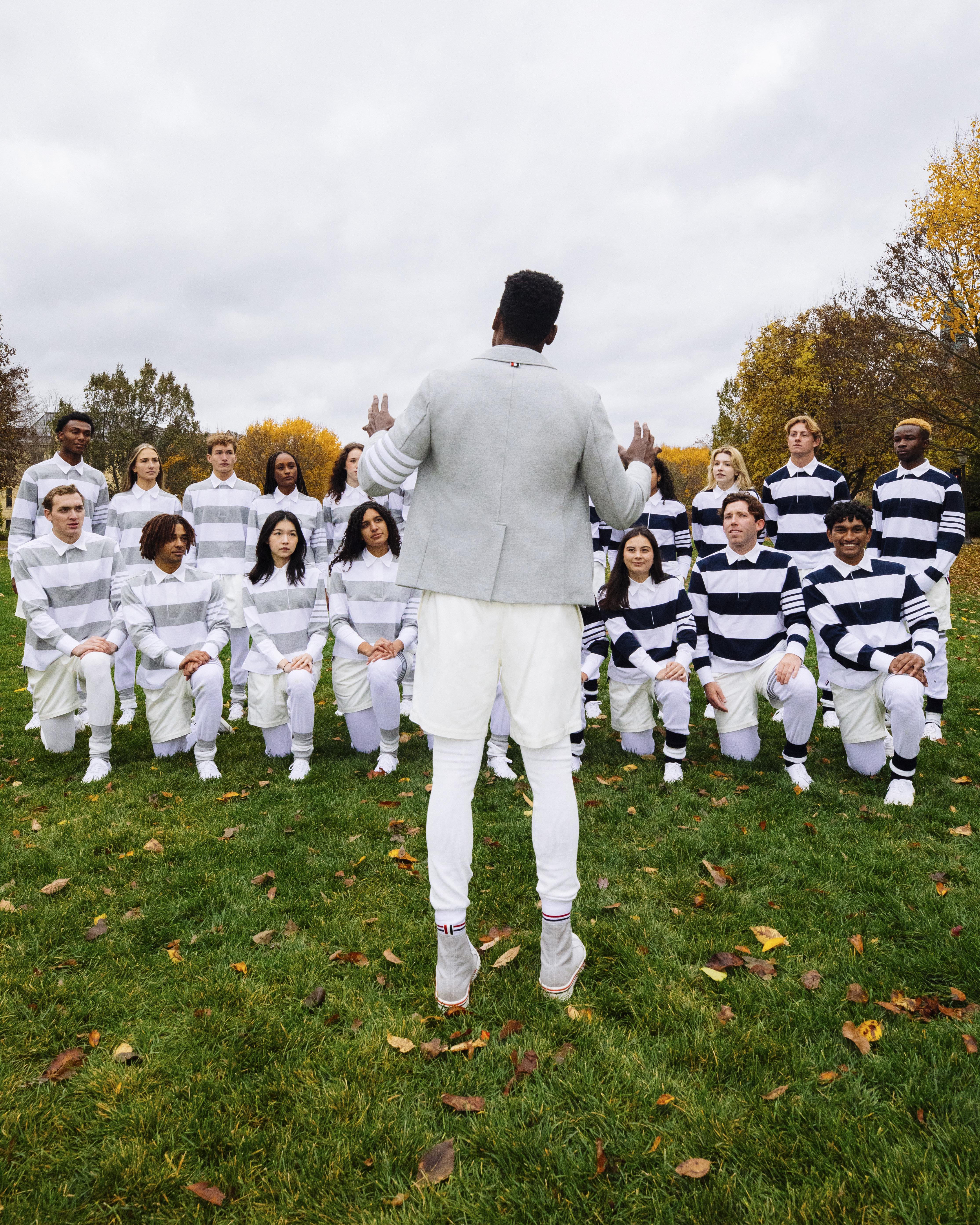 Thom Browne is known for his contemporary designs, but he got started at Notre Dame University, where he’s now an Artist in Residence and will explore how fashion and design intersect with daily life. Browne held the annual football game on October 26 ahead of the launch of the Thom Browne Football collection on November 10. The collection is truly for everyone—with styles for men, women, dogs, and children. The line radiates coziness and warmth for the fall and winter months, but with a polished, tailored finish, true to Thom Browne's signature style.