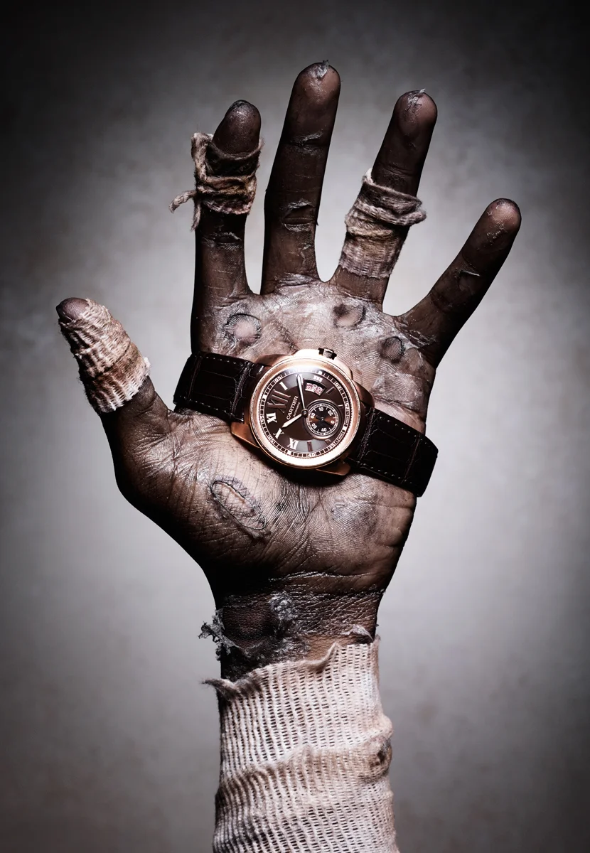 Calibre de cartier watch in 18k rose gold by **Cartier**.