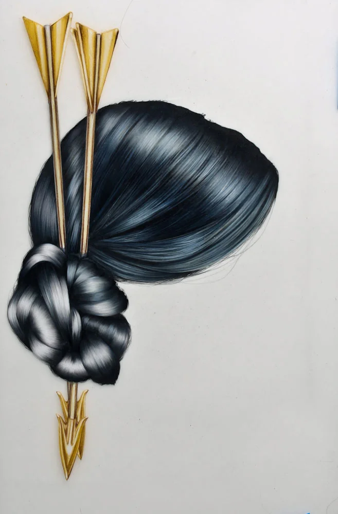 “While practicing drawing hair, I showed several colleagues my work. Unprompted, they openly started making comments like ‘That’s totally a bohemian dropout’ or ‘She’s middle aged, isn’t she?’ and most profoundly, ‘That’s a rich white girl’s blow out.’” People could identify gender, race, and even socio-economic status. “I thought it was utterly profound how in-tune our culture is to catch the difference between a ‘rich’ woman’s blowout or an ‘imitation’ hair relaxer done at home. It made me realize even the most subtle nuances of hair communicate who we are—or maybe more importantly, who we attempt to be.”