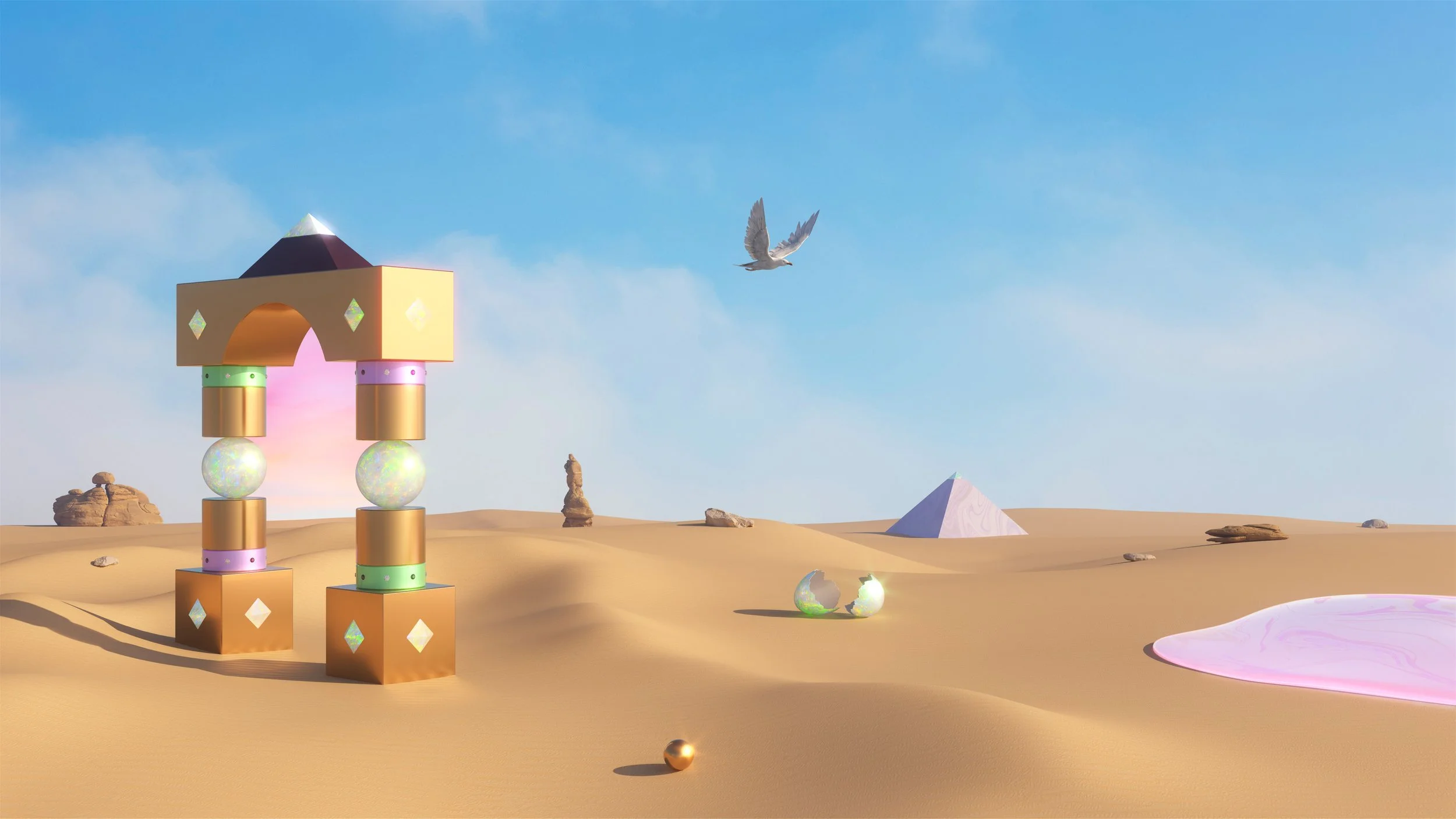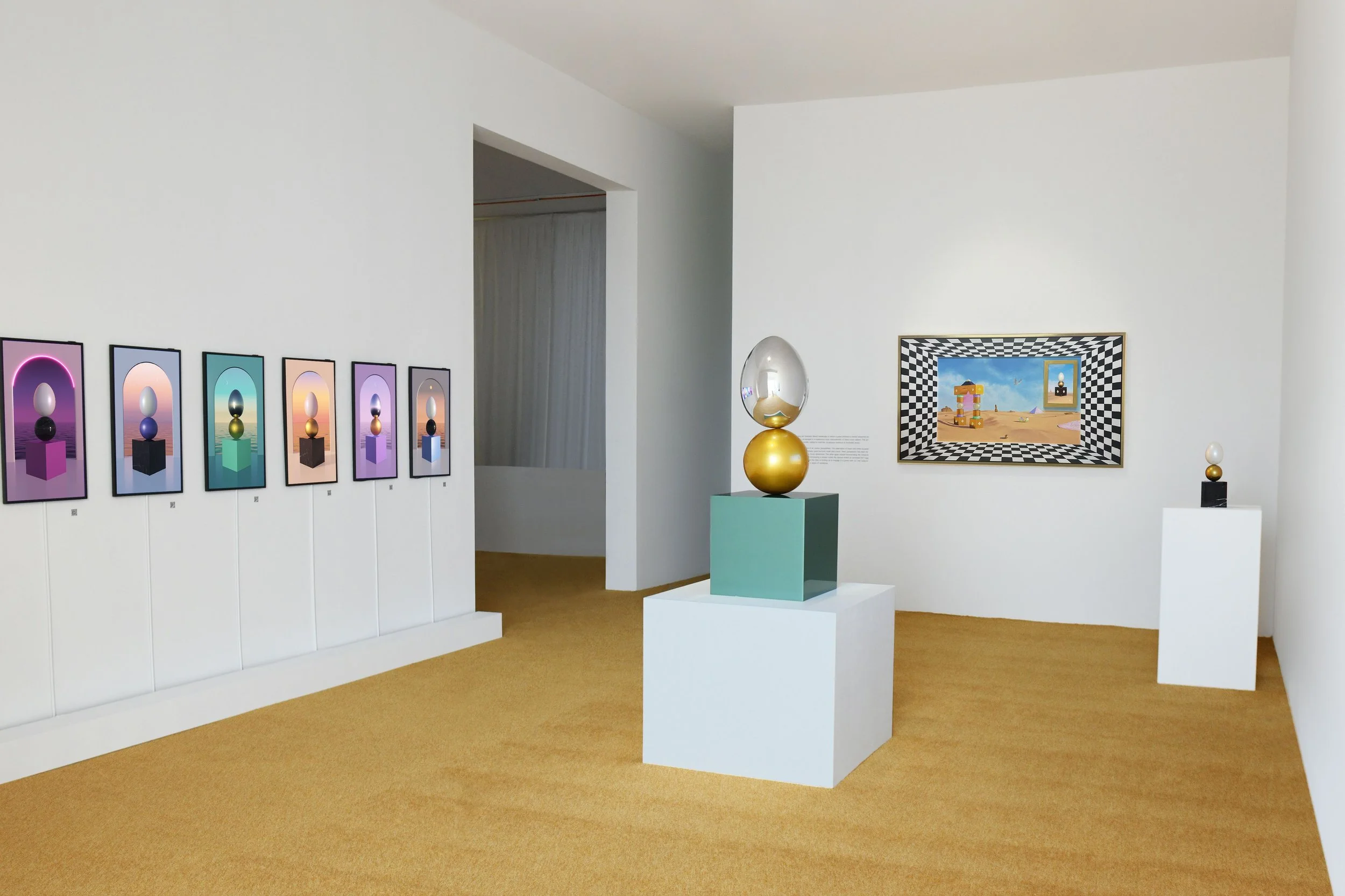 Building on Zeta’s self-coined ‘mystical futurism’, The Space of Variations employs surrealistic landscapes, neo-metaphysical concepts, bold colors, and abstract shapes. To explore The Space of Variations is to not only observe Zeta’s jewel-like totemic sculptures or to step into her otherworldly virtual landscapes, but it is a way to interact with both the artist and the intricacies of her mind.