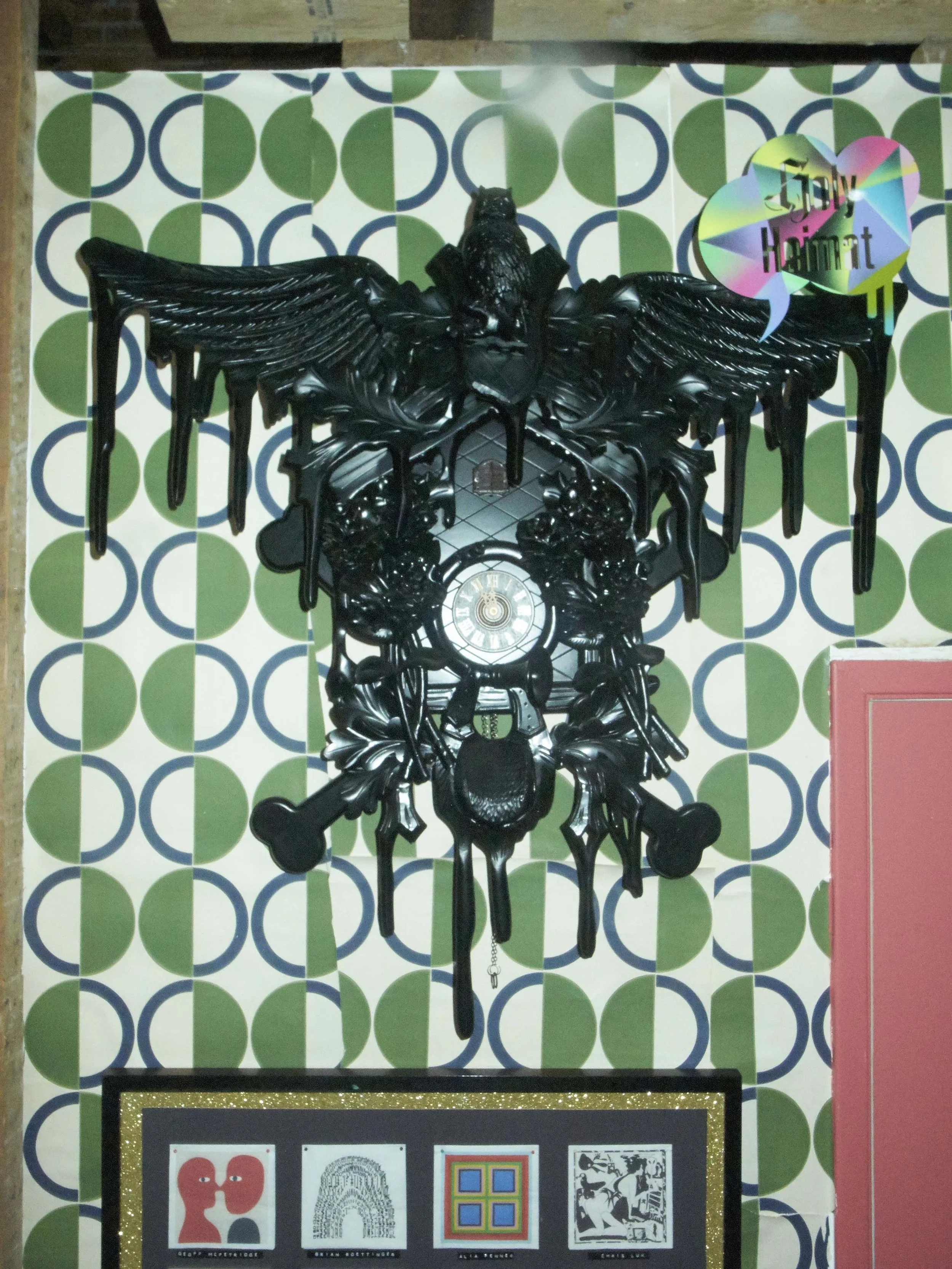 One step into the conceptual art bar installation that is La Rosa Social Club, is one brisk slip into an intimacy from which you’ll be hard-pressed to recover from. With deep, Latin feels seeping into the shells of anyone who enjoys this fleeting event, the Conversation collaboration between artist/curator Aaron Rose and creative entrepreneur/gallerist Johann Haehling von Lanzenauer is one to be experienced and not to be missed. Have a drink at the bar, lounge in the loft, take in the work, watch the ever-looping clip of car chases playing overhead.
