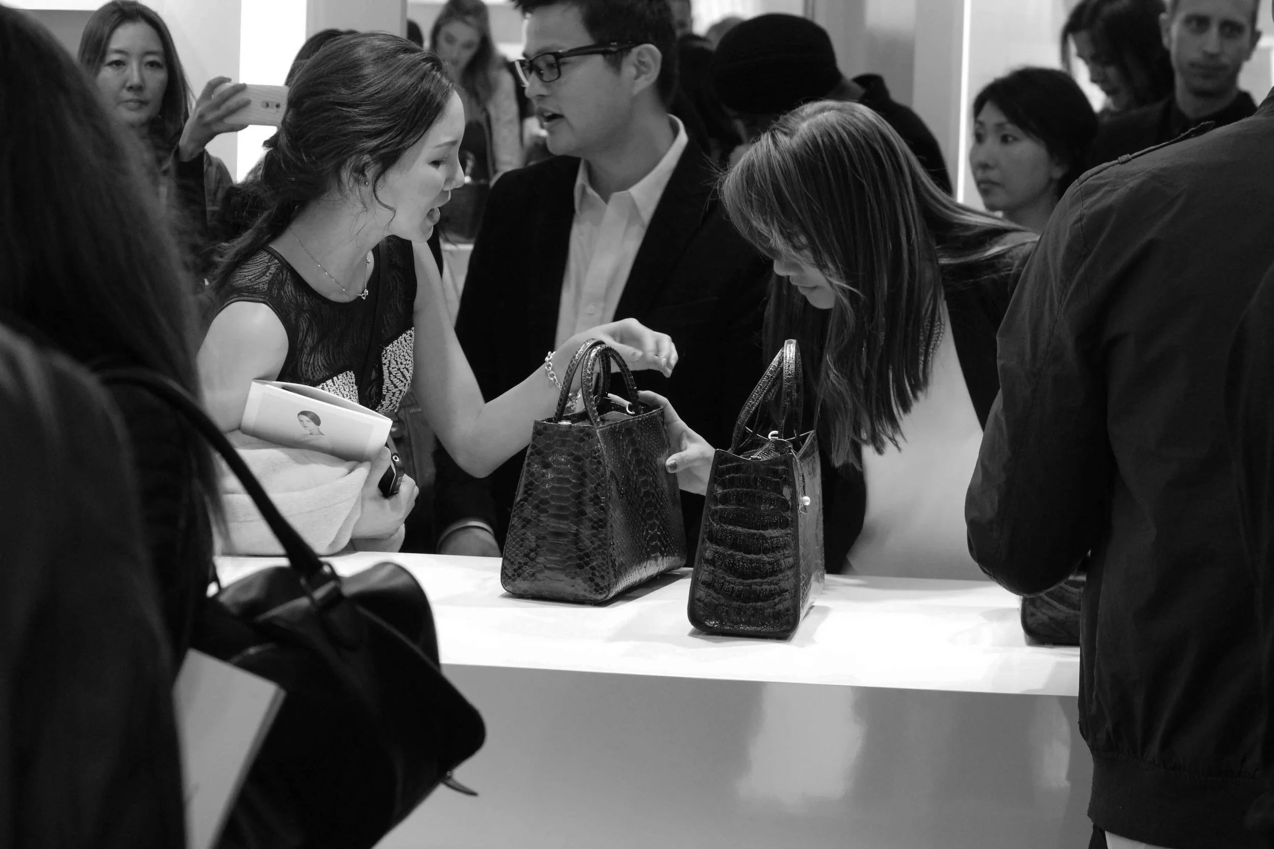 Last night we co-hosted the VIP launch of the [Jinammi](http://www.jinammi.us/) Flagship opening at the Beverly Center. Guests toasted Creative Director Jinam Lee with [Snow leopard Vodka](http://www.snowleopardvodka.co.uk/) cocktails, delicately nibbled towers of chocolate mousse, vogued to an Aaliyah soundtracked, and huddled around angled platforms, seeking the perfect Instagram-angle for the sculpted handbags, wallets, and bracelets. The minimalist, pristine white, space—on the 7th floor of the Los Angeles shopping center—is prime real estate for the bright objet d'arts. Guests were sent home with gift bags packed with [The Frankenstein Issue](http://archive.flaunt.com/s/magazine/issue-139/img) and Jinammi bracelets, and buyer and creator alike parted with a _Salud,_ to new neighbors and new friends.