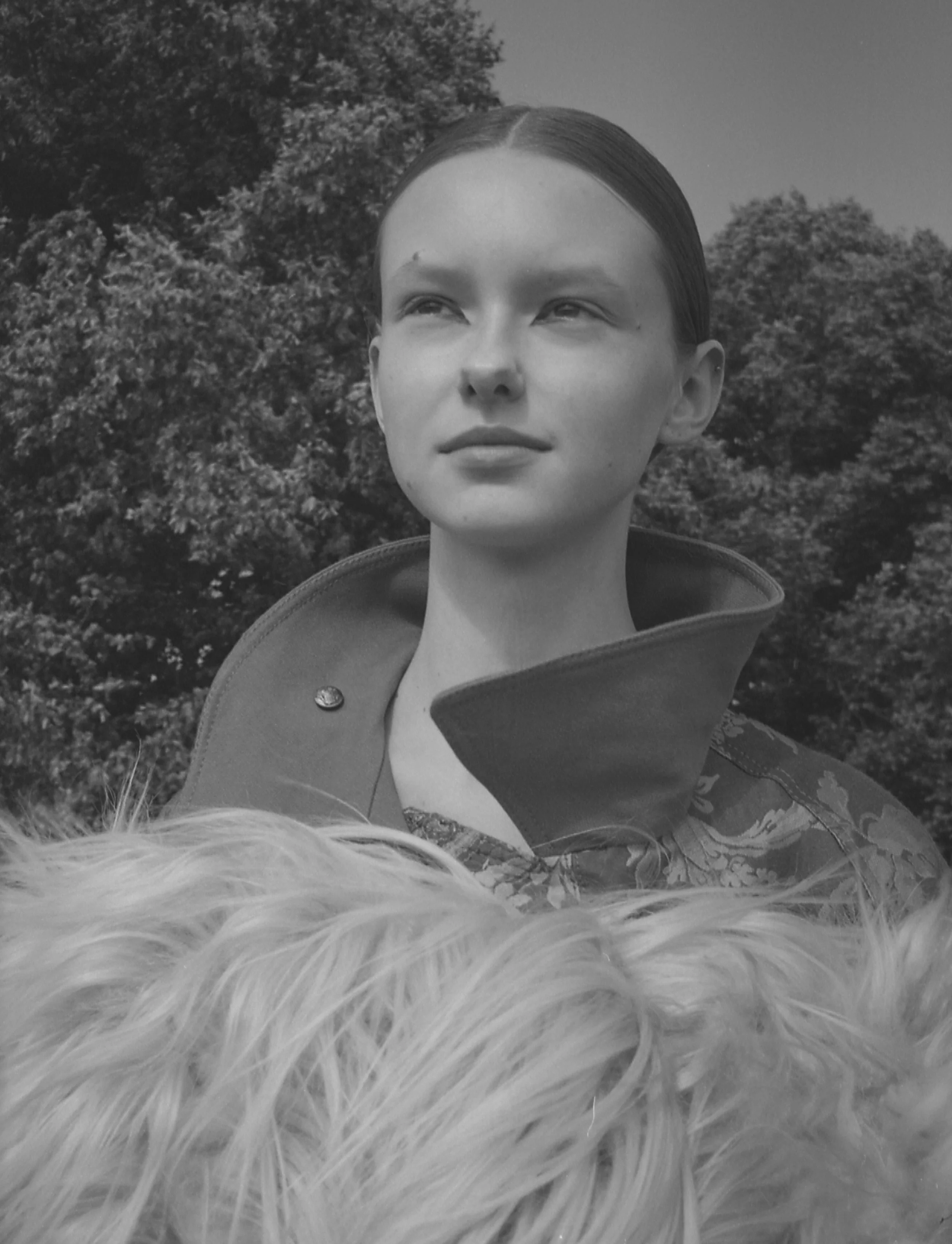 ETRO coat and SIMONE ROCHA shawl.