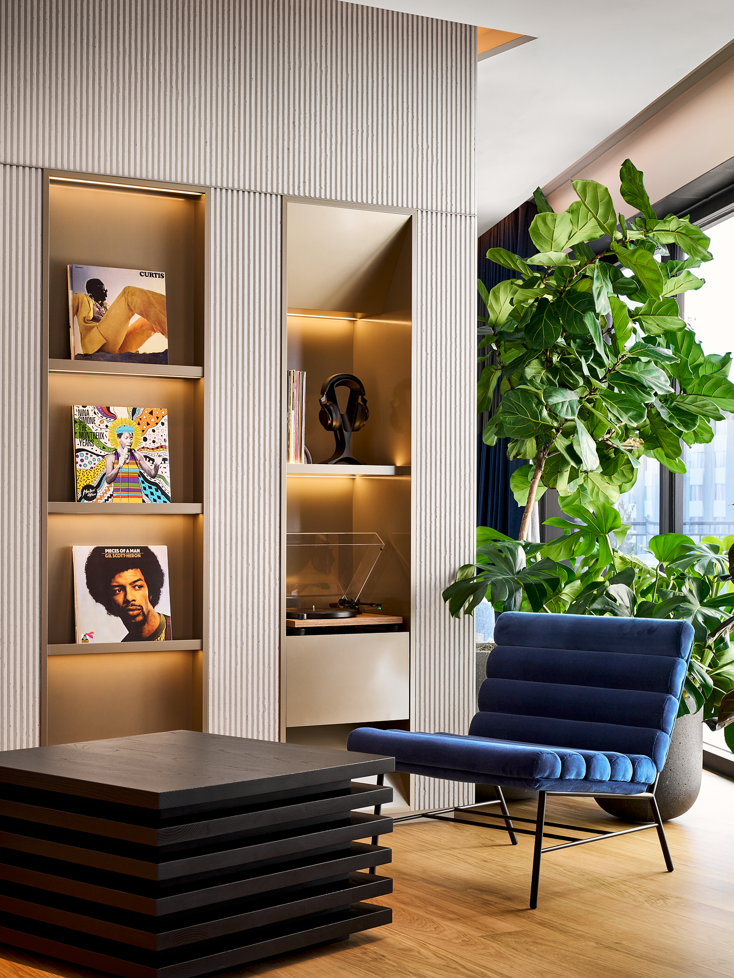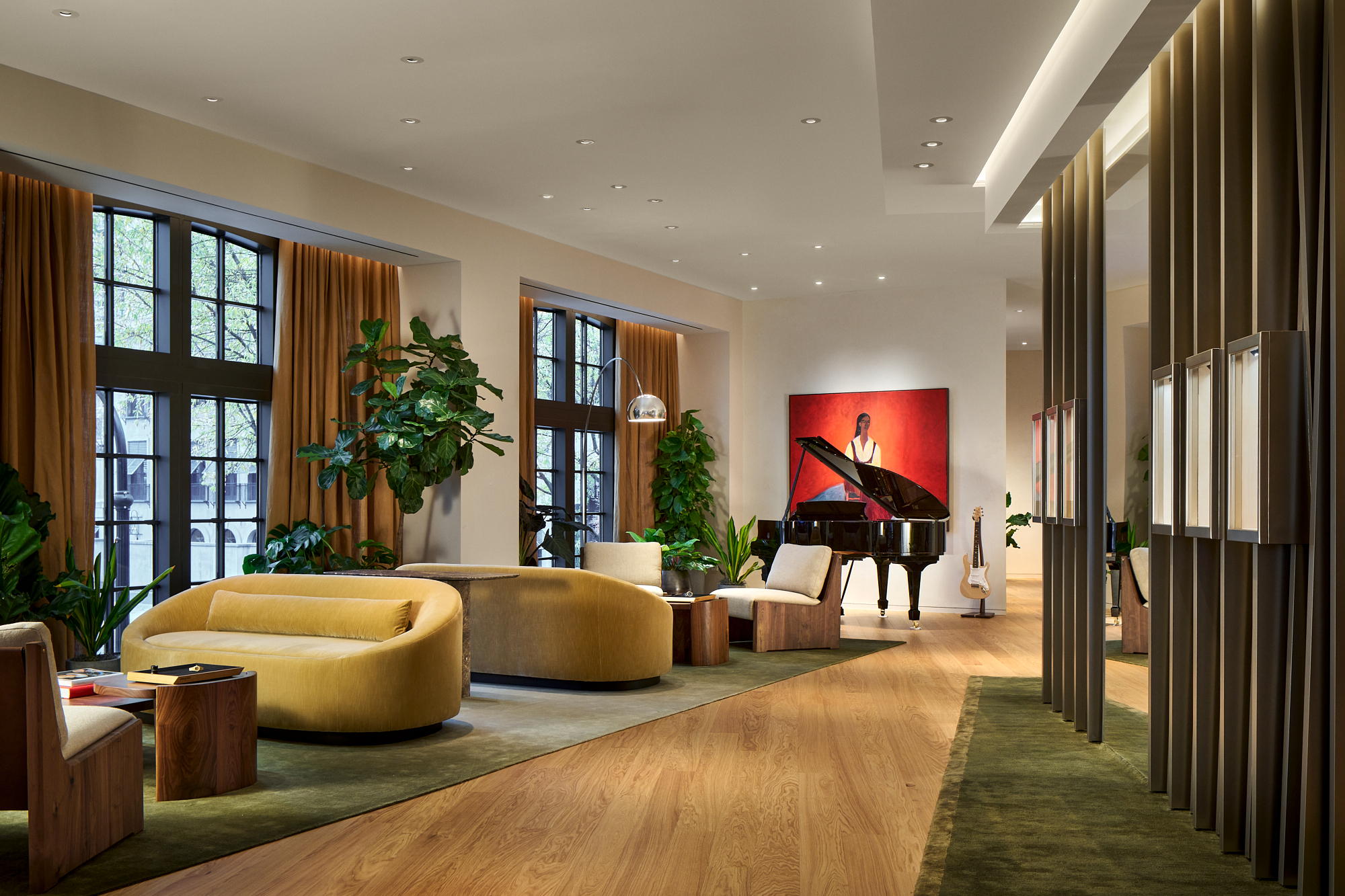 Each floor of the House is thoughtfully curated to reflect the brand's high quality, with an interior composed of bold forms and elegant finishes, and the ground floor serving as a carefully organized exhibition of both old and new models of Audemars Piguet timepieces. This sophisticated architectural setting is complemented by the contemporary artwork of Patrick Eugene, a Haitian-American, Atlanta-based artist, whose work has been lent by the Mariane Ibrahim Gallery to enrich the walls throughout the House. Through the seamless incorporation of Swiss and Georgian art, a union of precision and expression is showcased in a setting that invites clients to feel welcomed and restored.