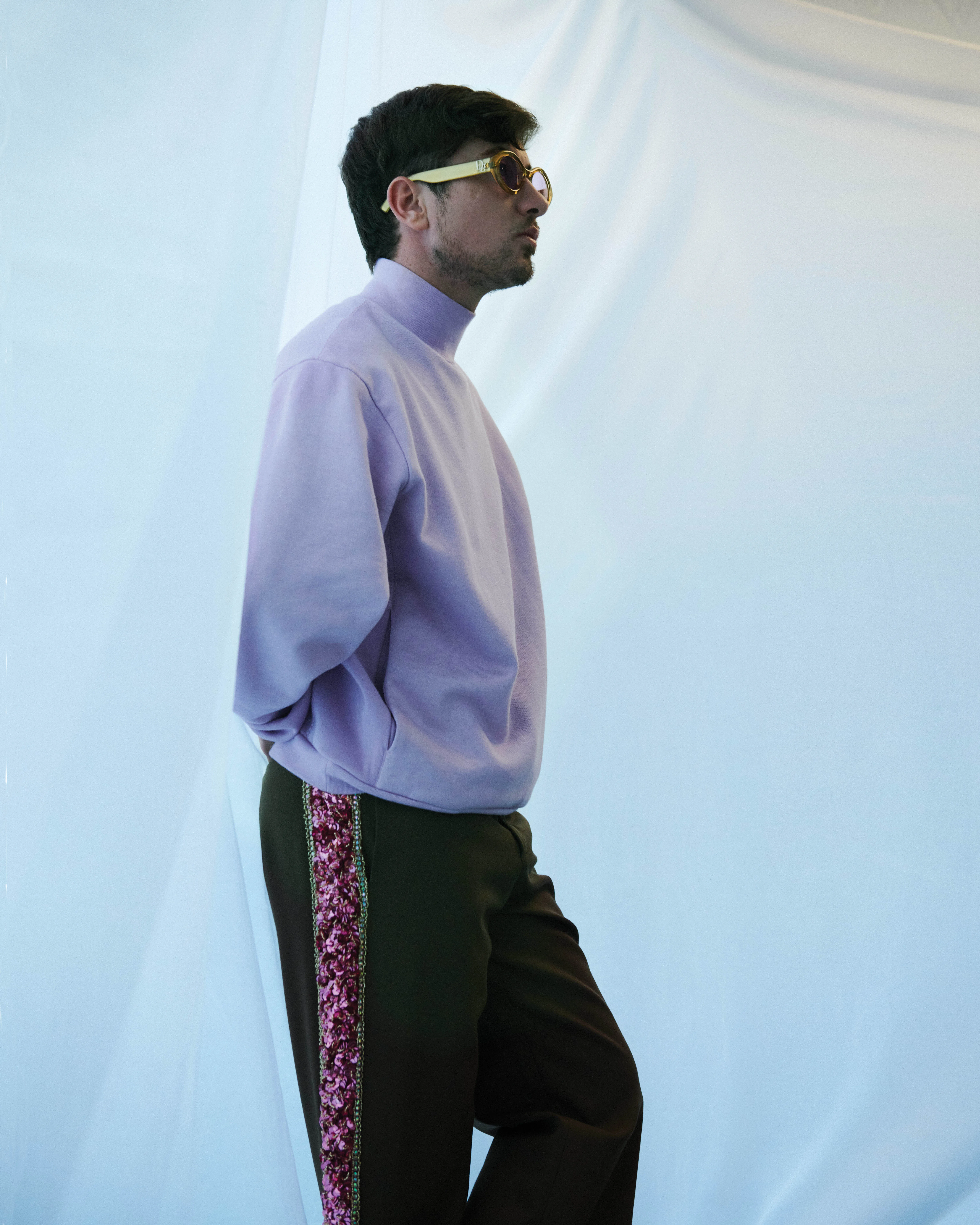His career has snowballed fast since his initial break, and it’s interesting to note his use of the word blessed in this regard. I want to dig deeper and find out if he actually has faith of any kind, or is fatalistic. “It’s kind of just the sense that, you know, I’ll say a prayer to my mother, or believe that she’s by my side, and you know, you do get wee little signs, and that–it’s what gets me by, and keeps me in kind of a content state,” he pauses, for a moment. “Yeah. I’m a big believer in kind of pushing positive thoughts out there, and frequencies that attract good back. I suppose it’s basically the law of attraction. But I don’t believe in the law of attraction in a way that you ask for things, like, you know, money or cars, and that – I’m just asking for the opportunity.