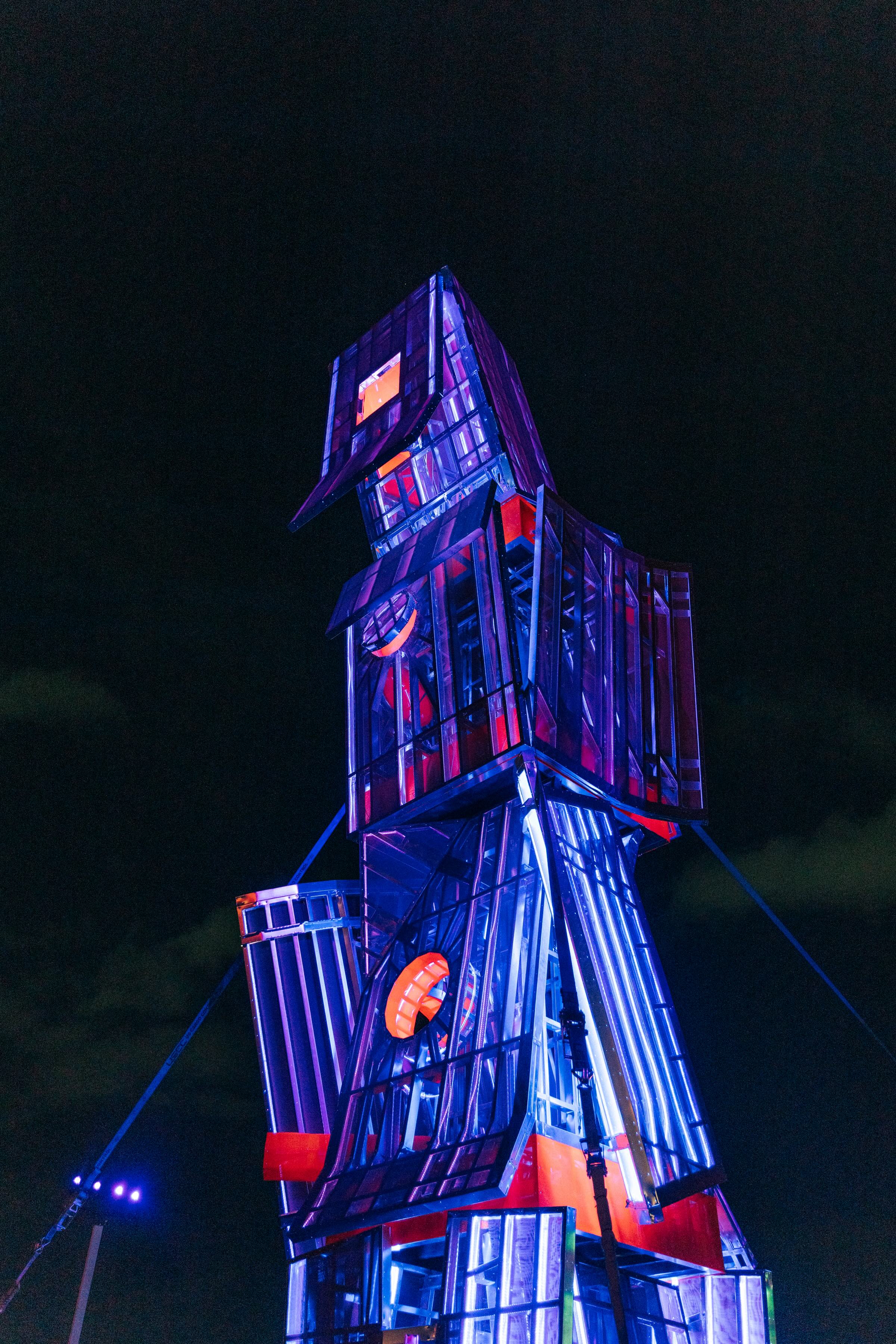 As the installation shifts from solid mass to illuminated lattice over the course of the day, how do you think about transformation, perception, and the role of light in revealing the work’s dual nature?