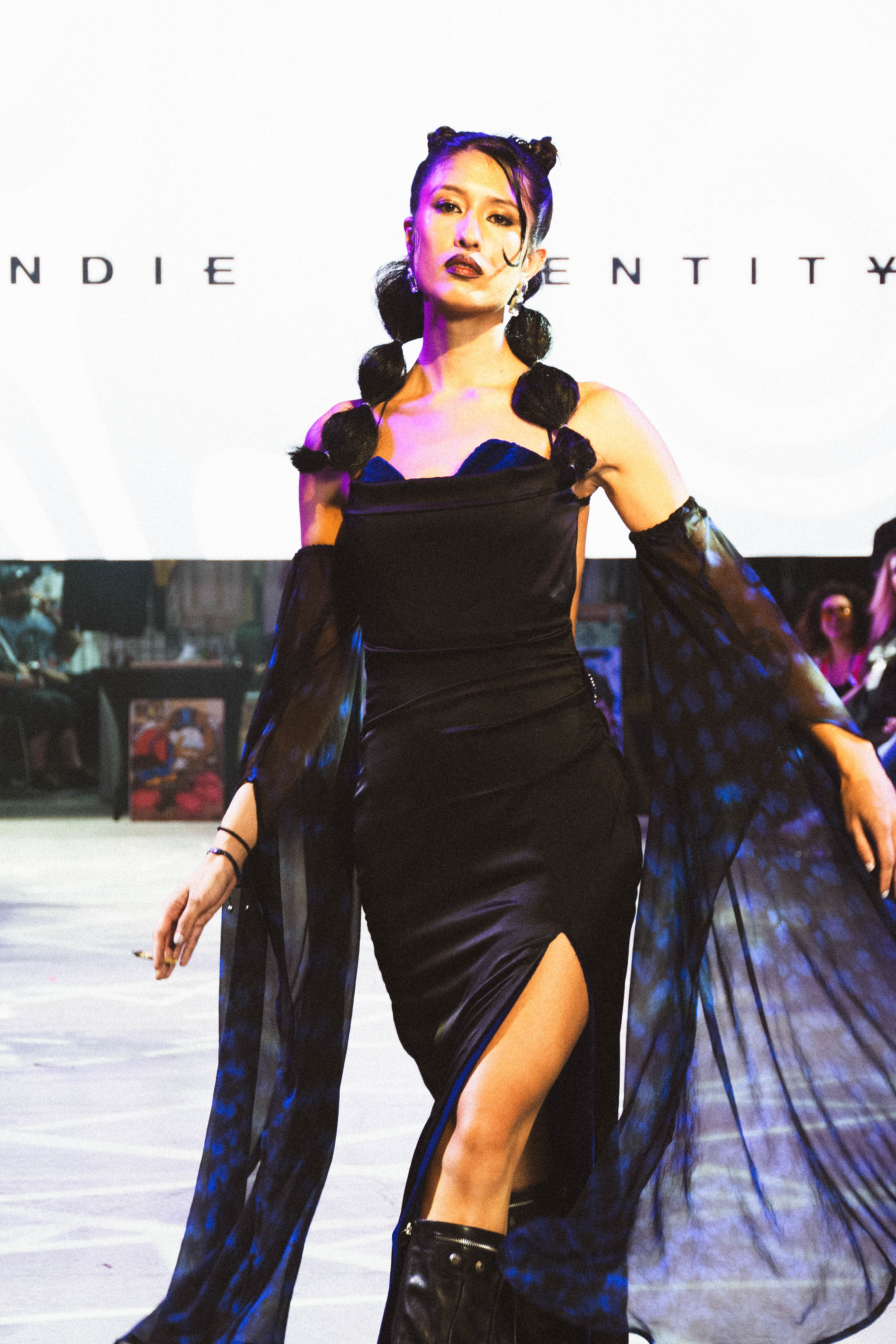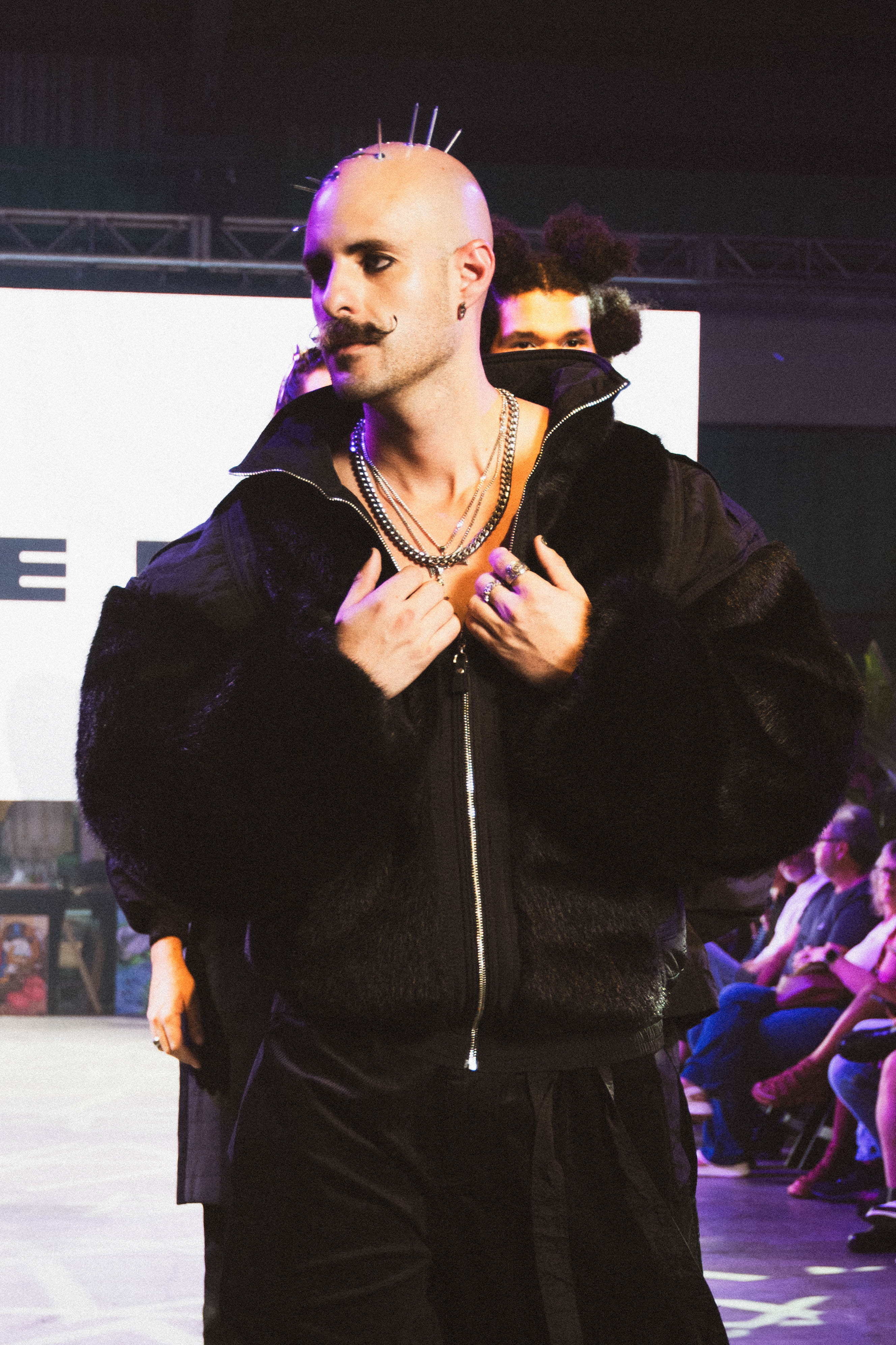 The show’s cohesion came from a deep bench of collaborators. Direction was led by CRISP, with music by Xevios and production management by Jacinta Schwartz. Hair was handled by Silvana Avignoni, assisted by Lacee Hallet, Styles by Shayda, and Jean Pierre. Brazil Raine and Michelle Venta led makeup, while Havanna Othon oversaw wardrobe, with support from Victoria Arenas, Mia Melo, Aimee Prada, and Nicole Perez. Black Market Beverages sponsored the show and highlighted each designer following the closing.