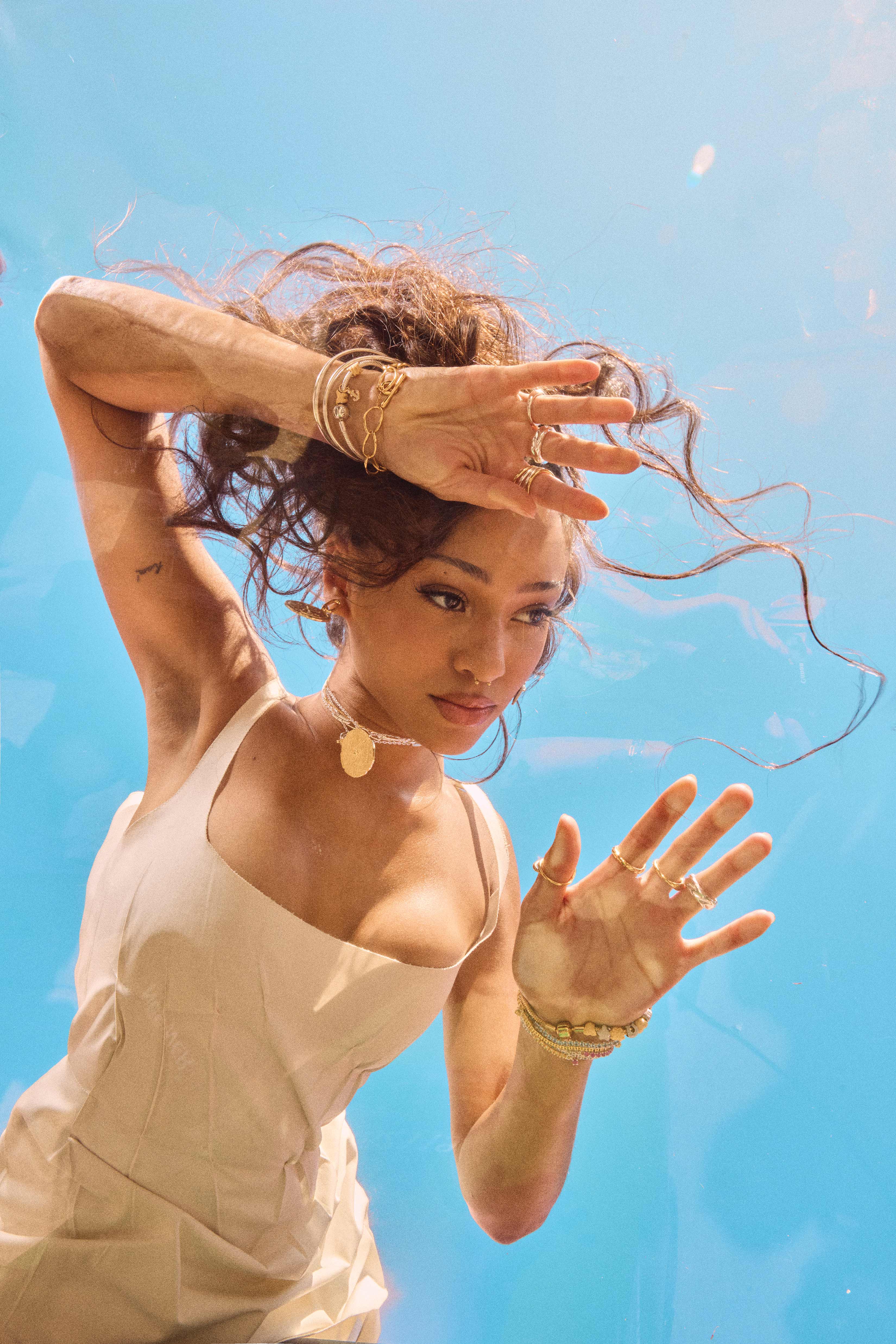 “Growing up in Switzerland,” she says, “it was kind of hard to find someone who could, first of all, even braid my hair, but second of all, it was so expensive—kind of a Black girl in a white country experience, but I was just trying to figure my hair out on my own, watching YouTube tutorials, braiding it myself. Hair has always been a very big part of me. I’m obsessed with it. There’s so much history connected to it.”