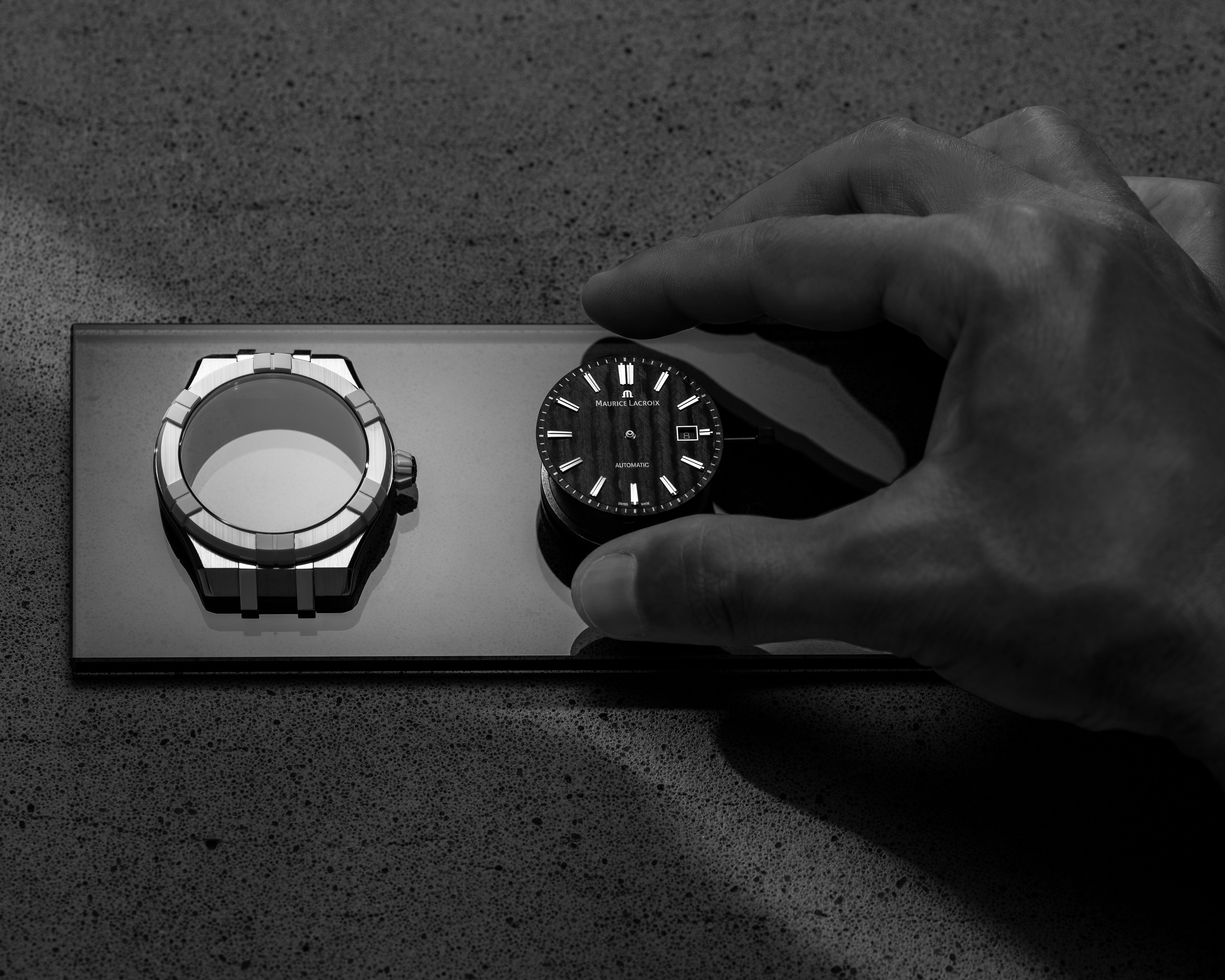 Masterfully sculpted at Maurice Lacroix’s manufacturing facility in Saignelégier, Switzerland—by incorporating several locally sourced elements—the newly released Aikonic watch features new ML100 ultra high precision caliber, a scratch-proof ceramic build and an unidirectional carbon dial, making each piece a distinctly personal creation. Beyond physical novelties, new materials were used for the production of both the dial and case, and the watch features a newly refined movement formula as well as a recently patented ML Easy Change system.