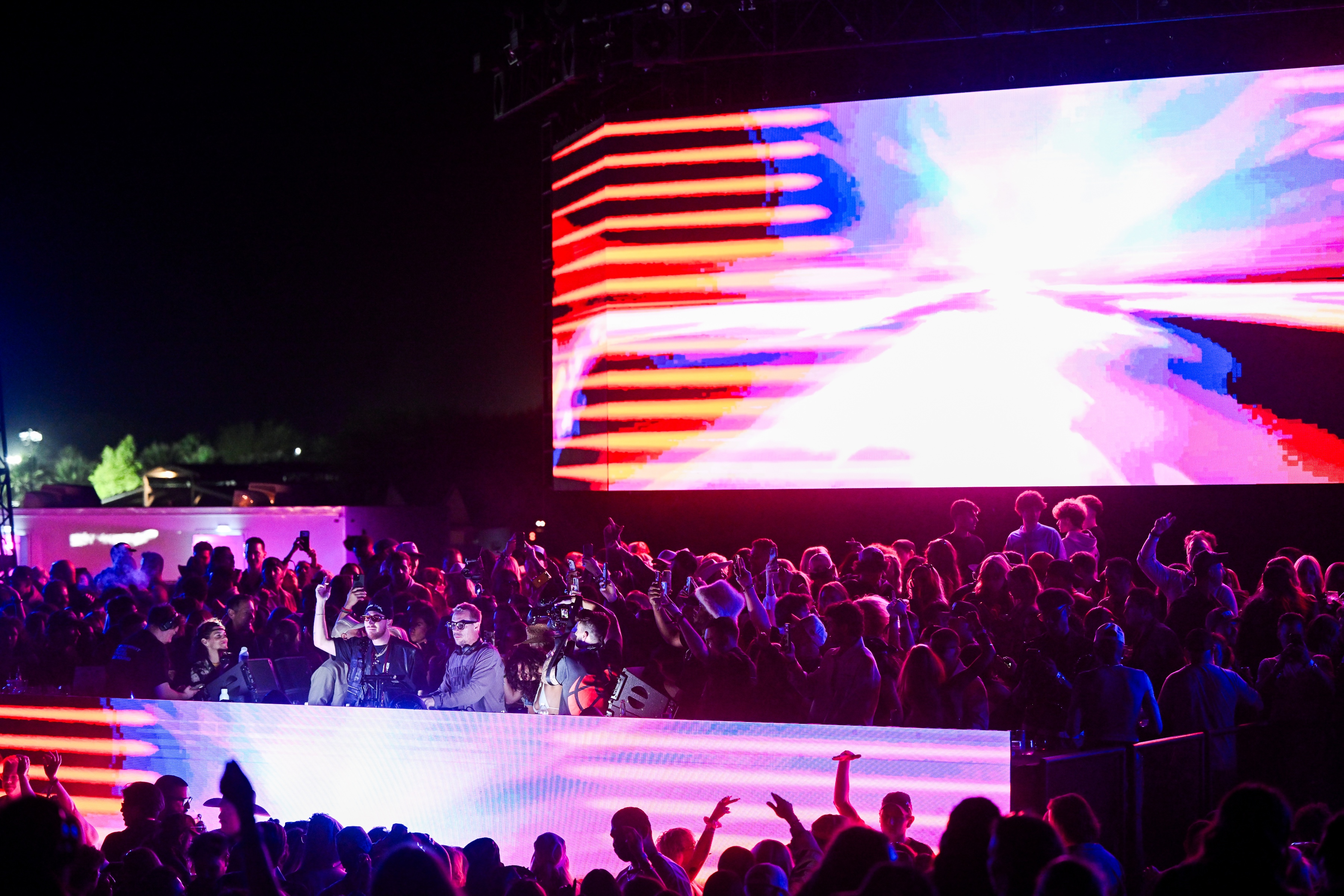 Partygoers perused the interactive experiences and exclusive product offerings that proliferated the event’s grounds. Popular amongst these installations were the comfortable social lounges arranged by Trident and Sketchers, encouraging an opportunity for relaxation at the beginning of the busy weekend. Beauty and wellness sponsors e.l.f. Cosmetics and Sally Hansen stocked guests with makeup and manicure goods, while Neutrogena’s glowing skincare exhibition utilized neon-blue lighting to exemplify their Hydro-Boost Water Gel’s hydrating and luminous qualities.