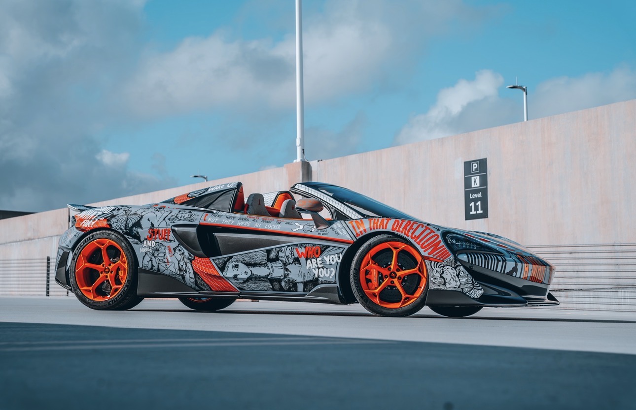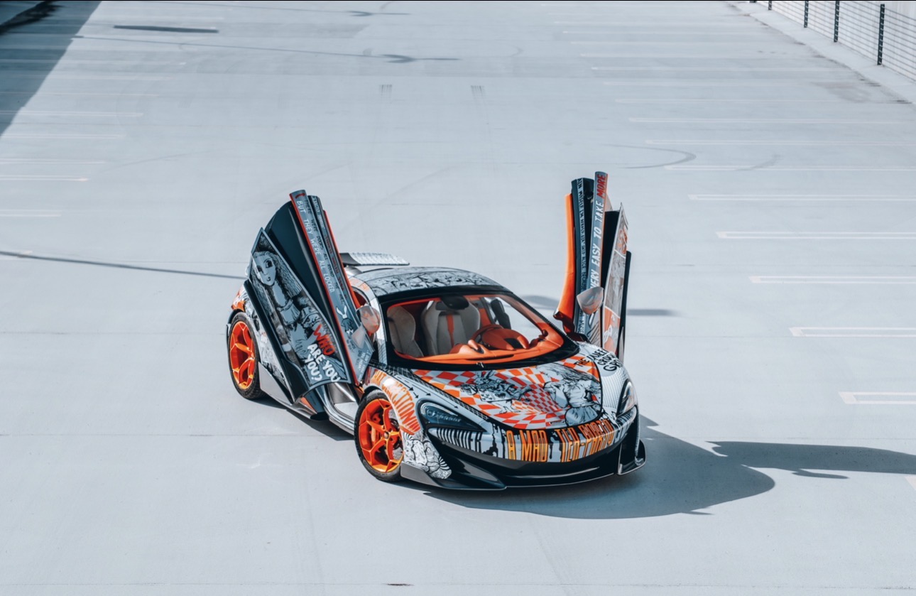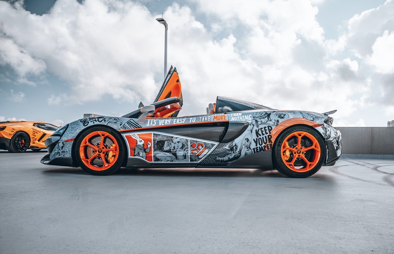 Within this technical framework, each project develops its own artistic universe. “Alice in Wonderland” is vivid and cinematic, built around color, recognizable characters, and dynamic transitions. On the McLaren 570S, this translates into a continuous illustrated narrative that moves across its geometry: the palette and emotional tone were planned in advance, giving the supercar the feel of a story unfolding in motion. Its energy lies in visual abundance — bright scenes that wrap around the bodywork and immediately capture attention. This mirrors a wider cultural inclination toward maximalist, story-driven imagery, as audiences look for expressive, optimistic visual experiences after several years of restrained digital minimalism.