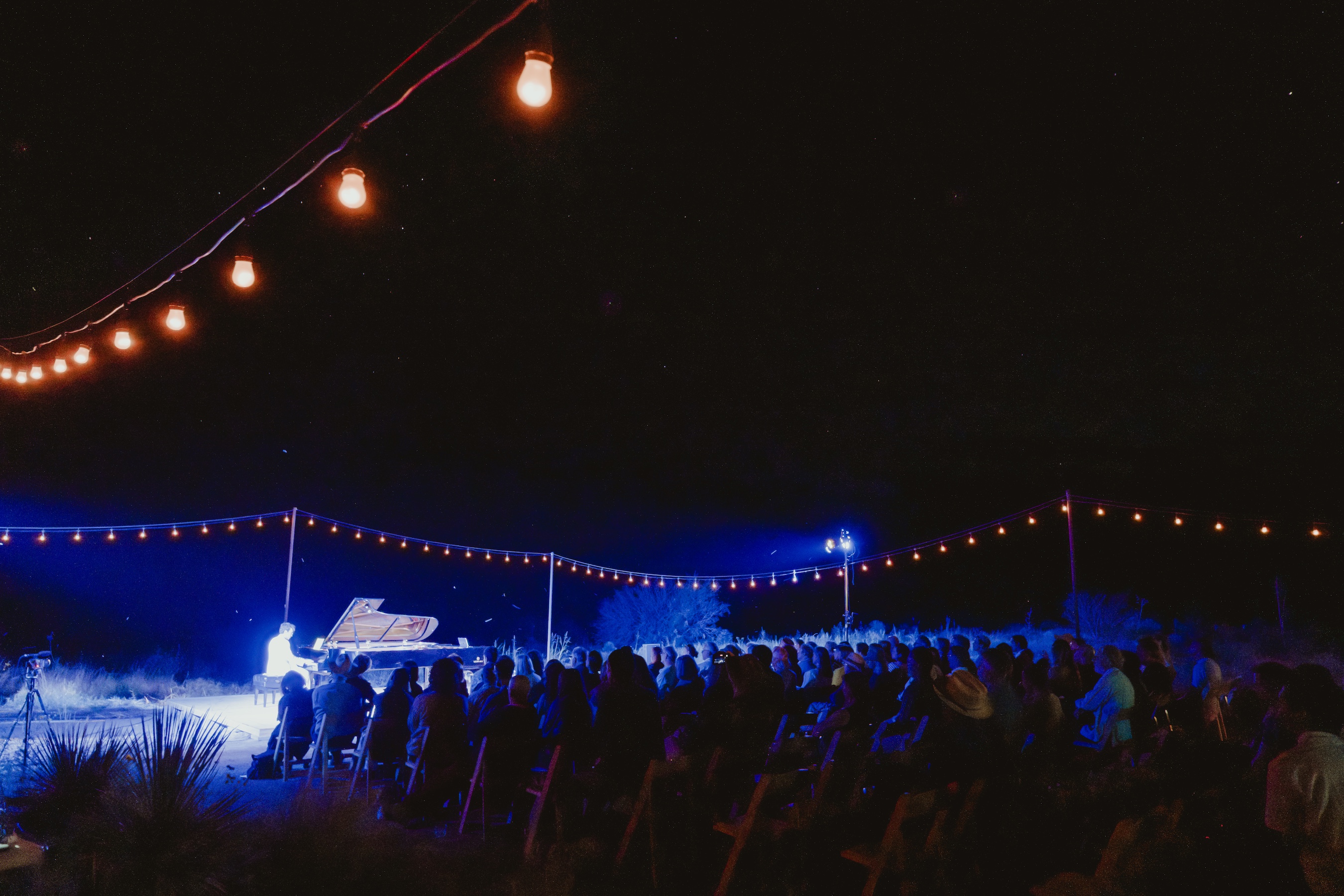 On the final night of the residency, it seemed as though the whole town of Marfa gathered under an impossibly clear night sky to witness the boys play. One piano placed in the center of Haroon Mirza’s Stone Circle. I almost couldn’t take it seriously at first—how cinematic it all was—and then, like some taunting cosmic gift, the brightest shooting star I could imagine streaked across the black sky.
