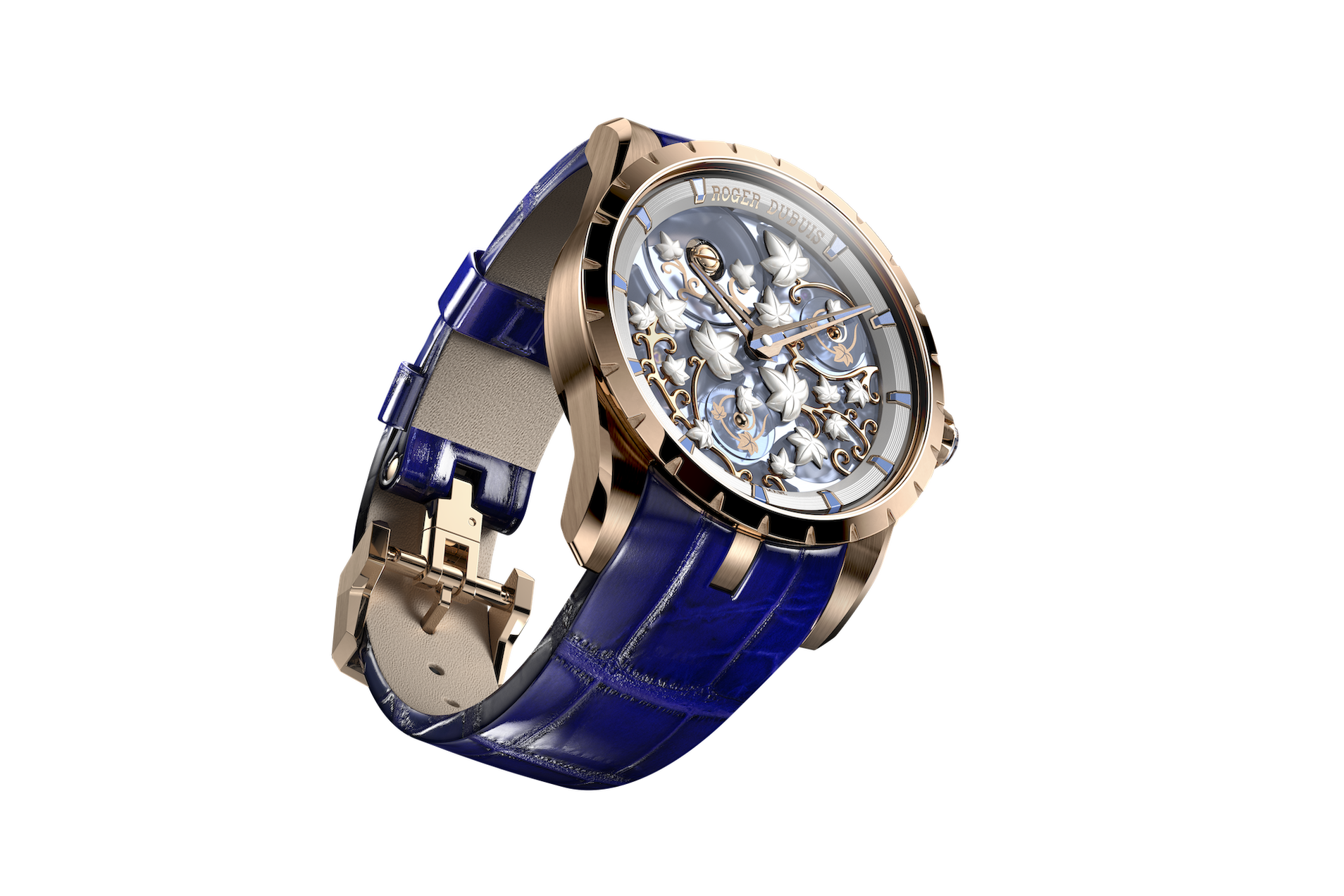 Inspired by the mythical magic of the Arthurian forest, the Excalibur Brocéliande returns in two 38mm editions: Dawn Rose and Twilight Blue, both crafted in 18K rose gold. These women’s pieces, limited to 88 pieces per edition, are powered by the skeletonised automatic Calibre RD721SQ, developed specifically for this line. With a 72-hour power reserve, the sapphire dial is adorned with mother-of-pearl ivy-leaf motifs and rotating sapphire discs, evoking a woodland wanderlust.