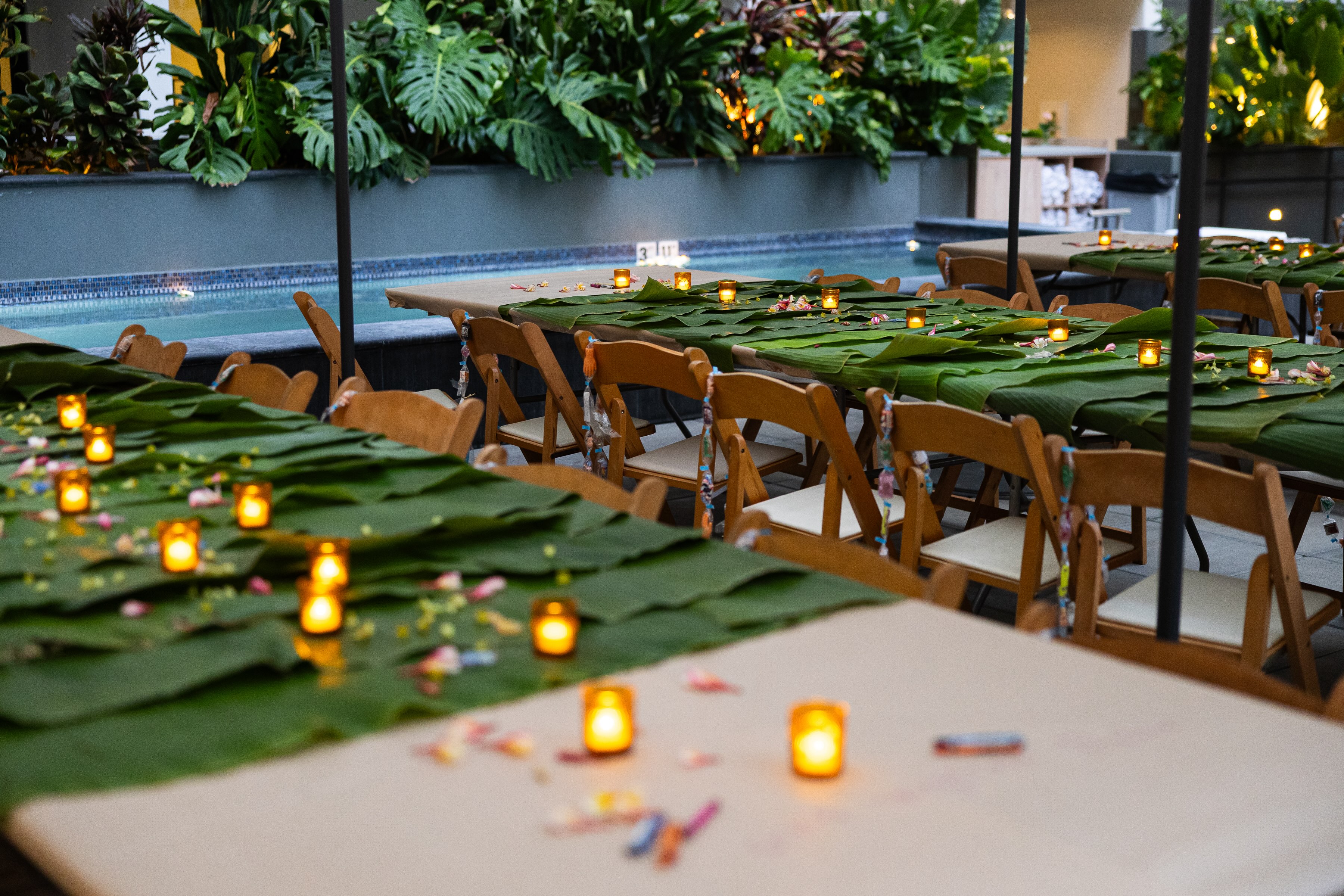 Guests gathered in The Backyard, the hotel’s private pool oasis, to enjoy a family-style Hawaiian BBQ dinner from 855-Aloha and Chef Brad Dodson. What makes Romer House Waikīkī special is its deep connection to the community. Guests are encouraged to use their room key, known as the Key to the Neighborhood, at a number of local restaurants and establishments, for discounts and special access. The House of Aloha party was no exception. Megan Godinez brought her hand-caught fish to the table, and collector leis from Small Kine Gifts were given out. Diamond Head Market & Grill brought guava shaved ice to the afterparty where cocktails from The Lei Stand, the hotel’s speakeasy bar, were poured.