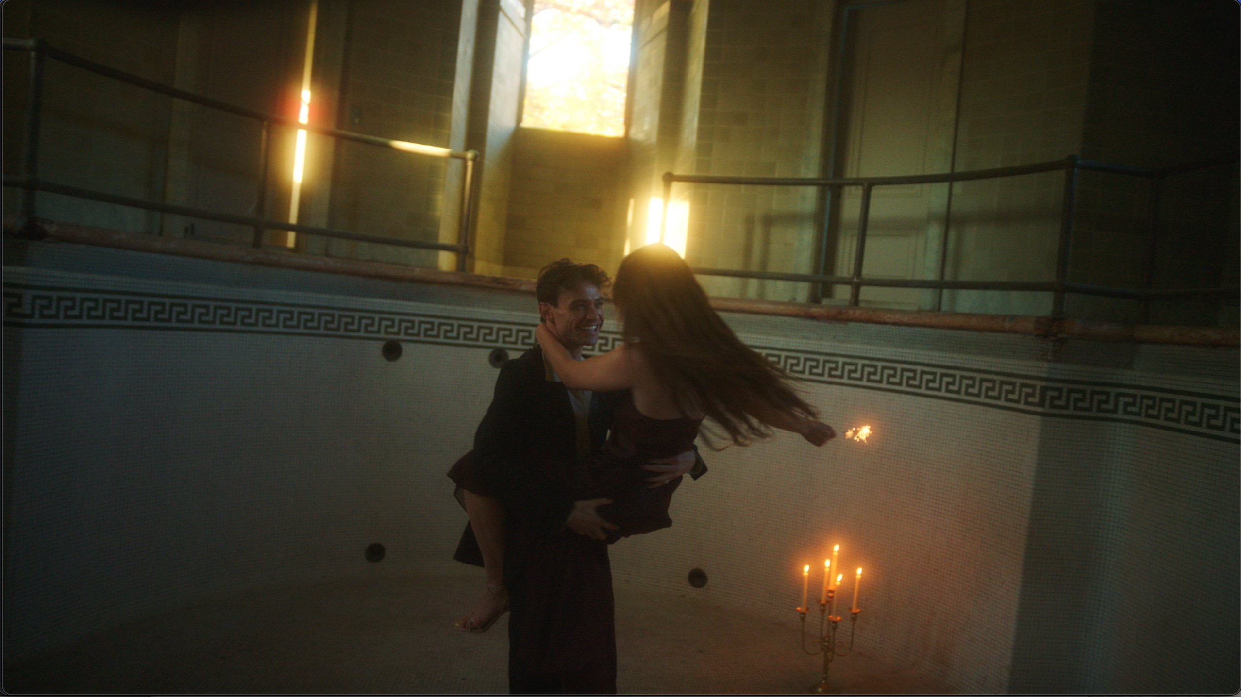 Accompanied by a cinematic take on the song’s identity, the music video follows Willis through a slow burn fantasy after she locks eyes with a mysterious interest (Thomas Doherty) at a party in a dreamlike Victorian mansion and nothing else seems to matter. Combining elements of noir and surrealism, the setting and wardrobe add to the tension and desire felt by the two characters, quite possibly a take on Baz Luhrmann’s 1996 Romeo + Juliet party scene, with Willis in an ethereal white gown and angel wings and Doherty decorated with a silver crown.